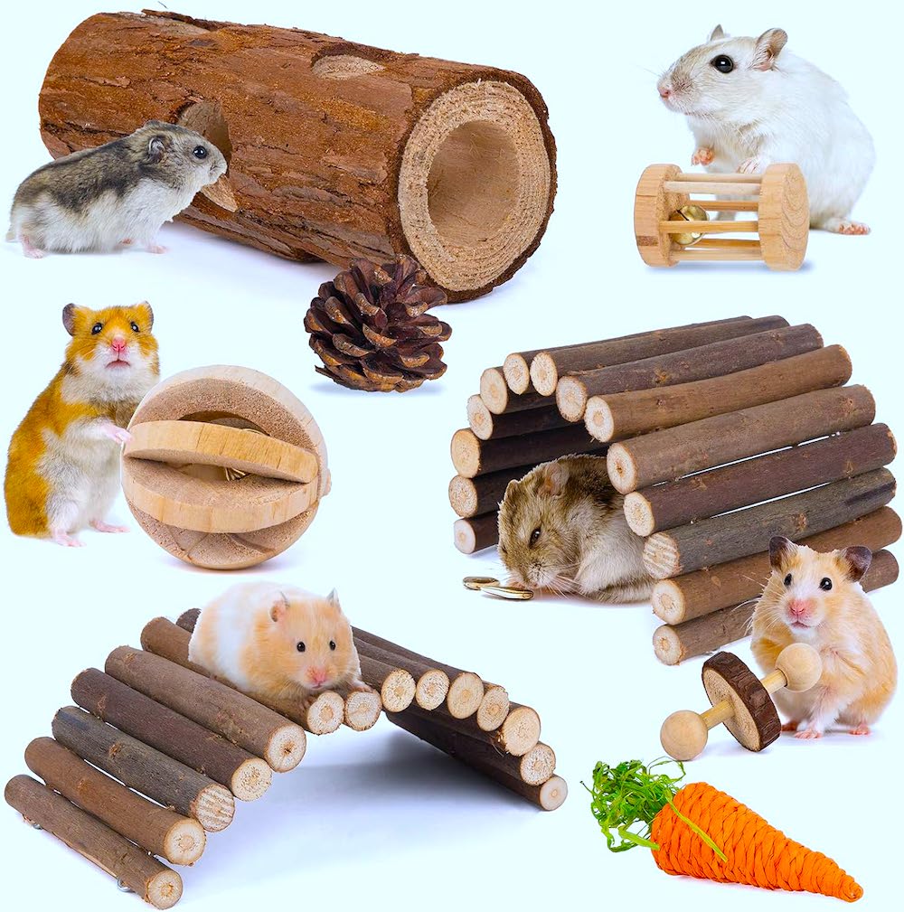 Since hamsters’ teeth never stop growing, chew toys provide an outlet for all that gnawing. Wooden hideouts or huts made from safe, chewable materials can double as both cozy sleeping quarters and a tooth-trimming station. Some come in cute shapes—like tiny cottages or logs—and help add a pop of personality to your hamster’s home. Bonus: Chewable hideouts also give your pet a secure spot to retreat if they feel overwhelmed. - Multi-Level Platforms